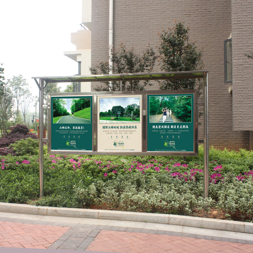 不銹鋼宣傳欄,此宣傳欄多數位于室外,畫面宜用戶外寫真車貼直接粘貼。